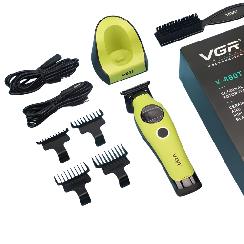 Lleva tu técnica al siguiente nivel con la VGR V-880T, la recortadora que combina tecnología de vanguardia con un diseño ergonómico de alto impacto. Equipada con un motor brushless (sin escobillas) de última generación, ofrece una velocidad constante de 7,200 RPM, garantizando cortes limpios incluso en cabellos densos, con menos ruido y vibración.